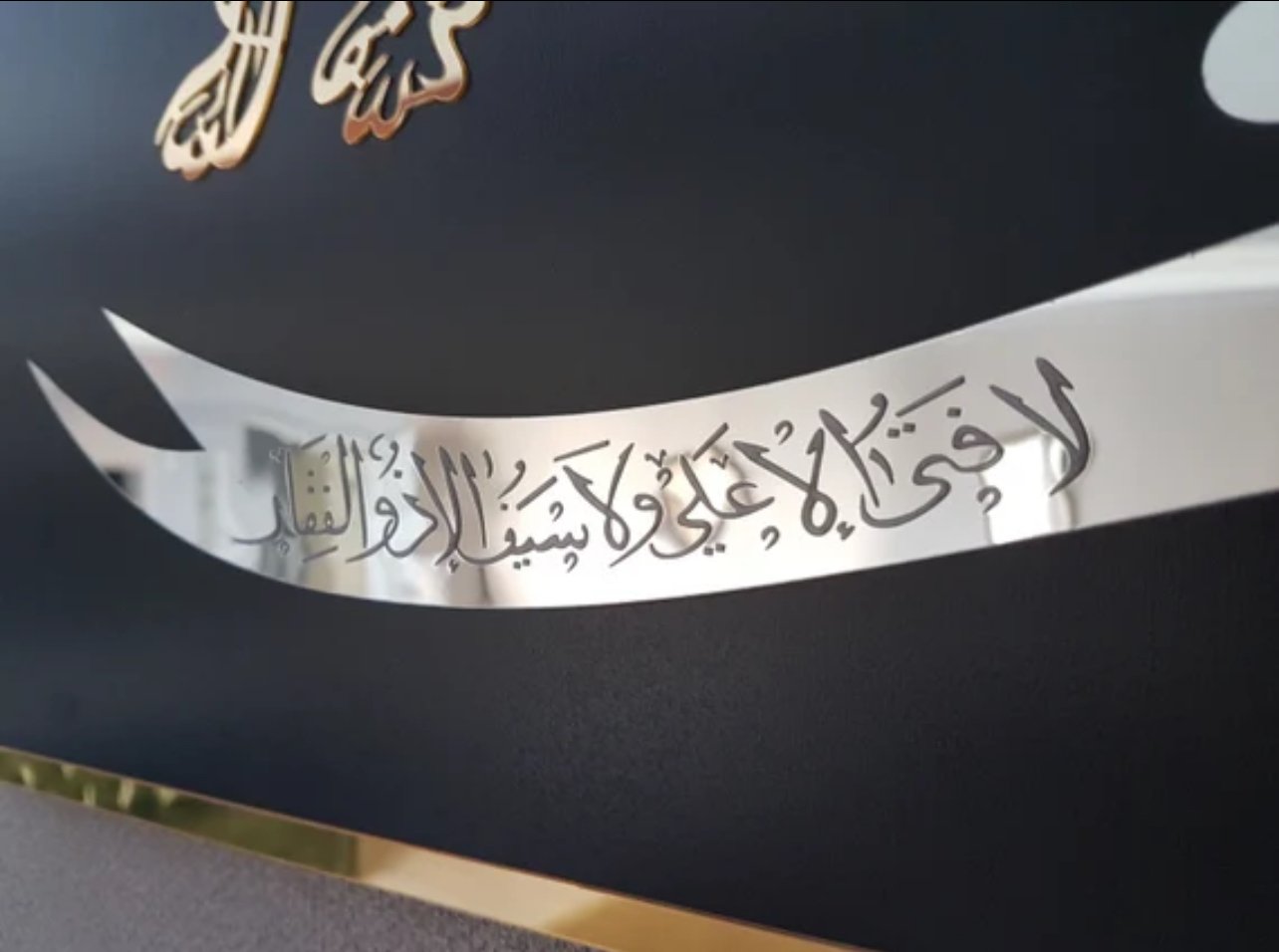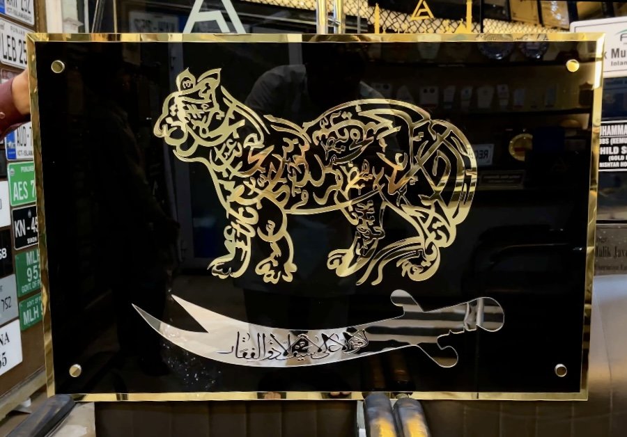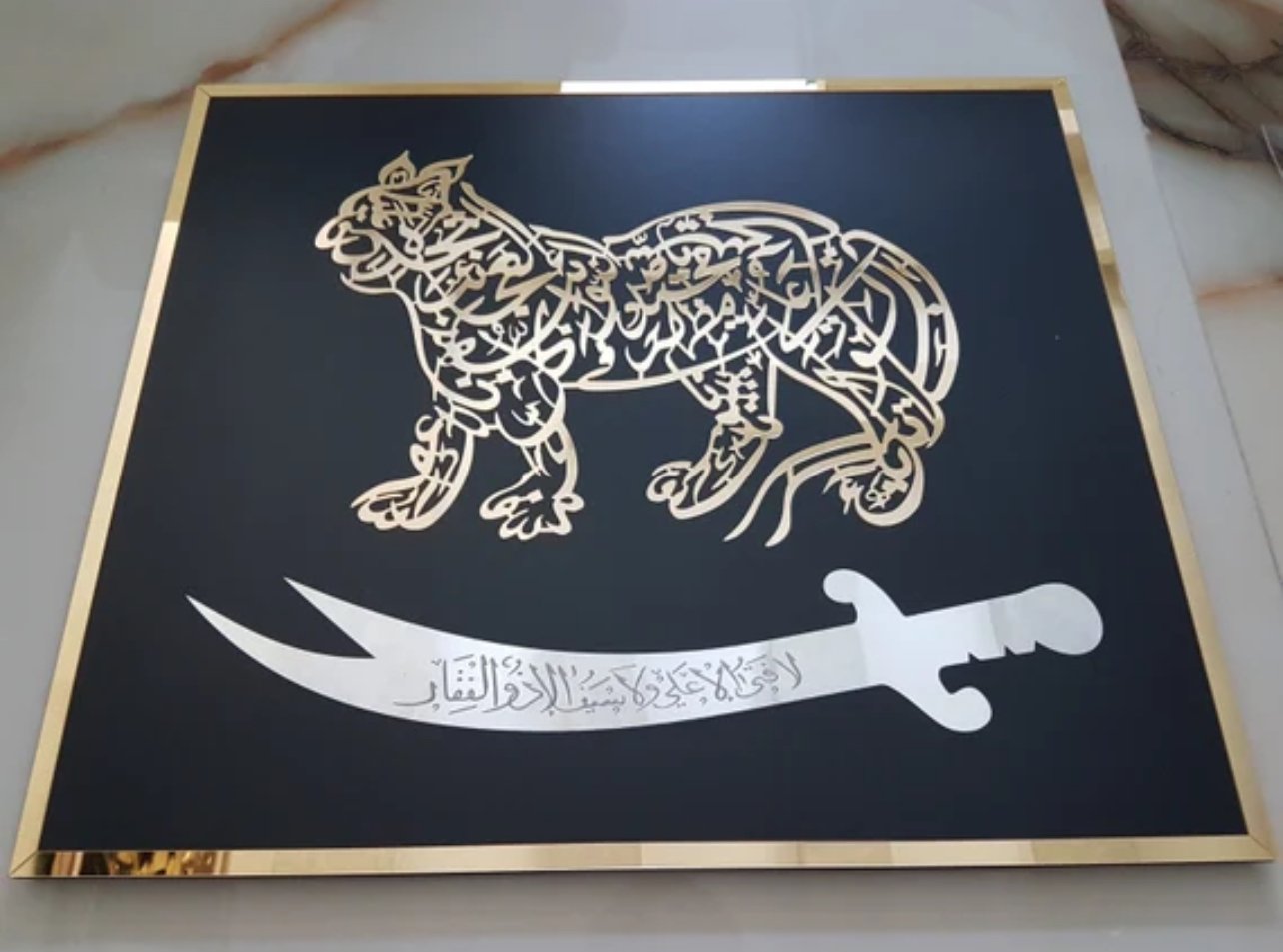 • Nad-e-Ali Lion with Zulfiqar Sword wall frame and spacers for mounting.