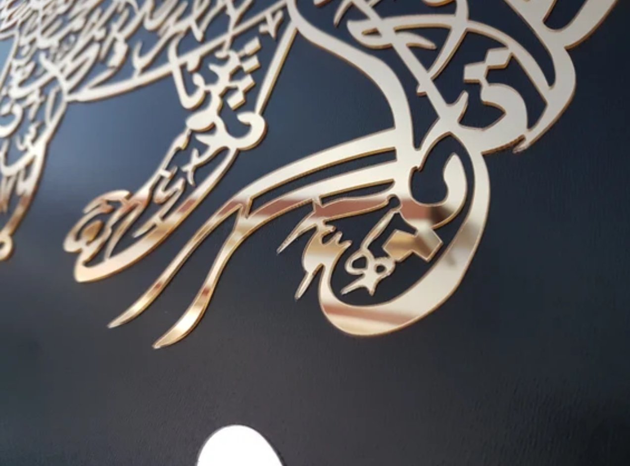 Celebrate the spirit of courage and faith with our Nad-e-Ali Lion with Zulfiqar Sword wall frame from Lucky Arts. Crafted with precision, this stunning piece features the majestic lion, symbolizing bravery, and the legendary Zulfiqar Sword, representing the strength of belief. Made of high-quality golden mirror acrylic with a black acrylic base, and mounted with spacers, this wall frame adds a touch of Islamic heritage and elegance to your decor.