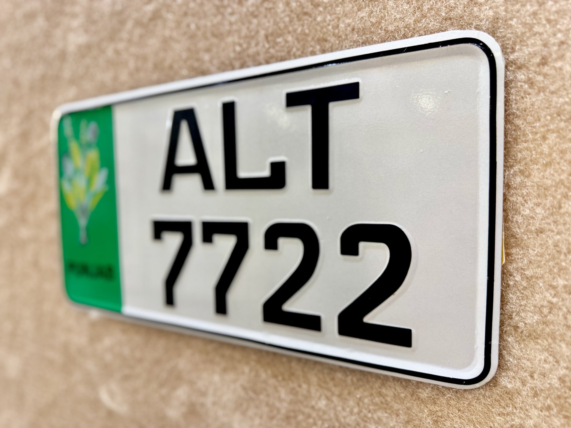 This product is a replica of a government number plate with embossed characters. Usage on public roads may be subject to local traffic laws and regulations. Customers are responsible for ensuring legal compliance before use.