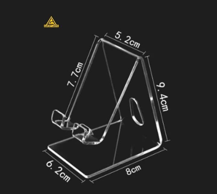 Elevate your workspace or bedside table with this premium acrylic mobile stand, designed to blend elegance with functionality. Crafted from high-quality clear acrylic, this stand offers a sturdy and sleek solution for holding your smartphone—whether you're watching videos, attending online meetings, or simply charging your phone.